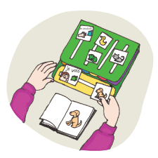 Les élèves apprennent à choisir parmi deux ou plusieurs images pour demander ce qu’ils préfèrent. Celles-ci sont placées dans leur classeur de communication.